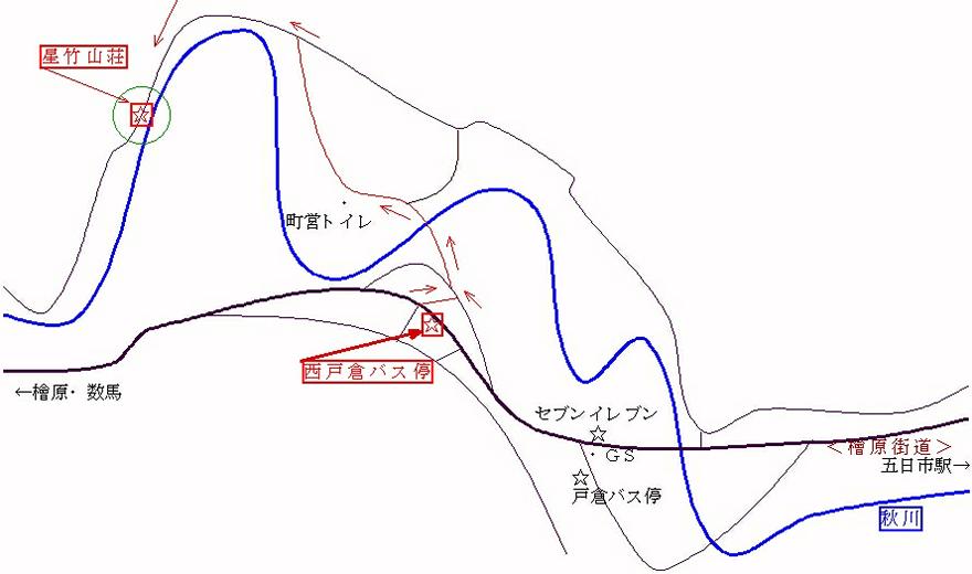 ・西戸倉バス停を降りて、目の前の信号を反対側に渡る。